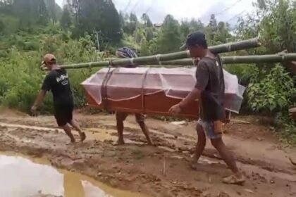 CERITANEGERI. TANA TORAJA — Akses jalan yang rusak parah kembali menyulitkan warga di Kecamatan Simbuang, Kabupaten Tana Toraja, Sulawesi Selatan. Jenazah seorang warga bernama Kalimbuang (60) terpak...